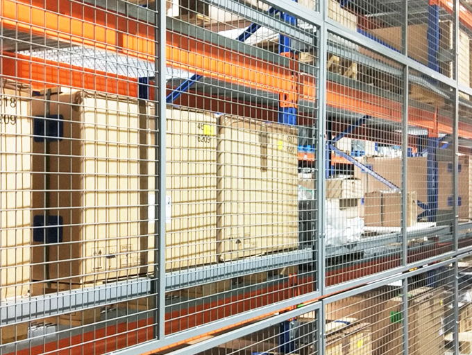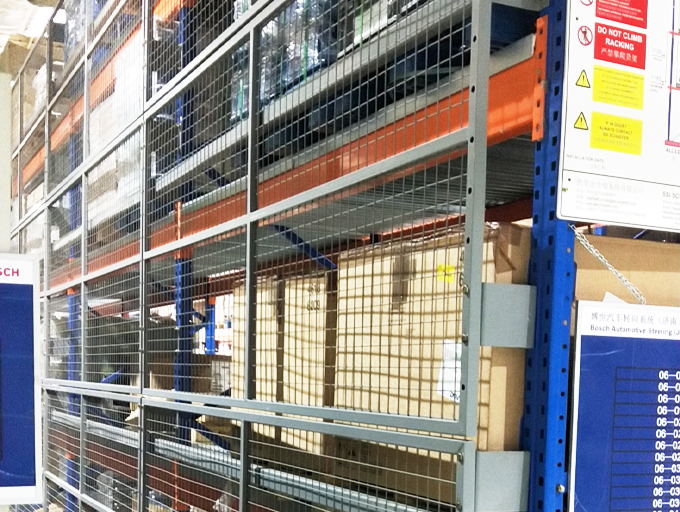 貨架背網:是一種將貨架放貨區域進行保護的金屬網墻,使空間規劃隔離,貨物分類隔離存放,防止散件物品高空掉落。